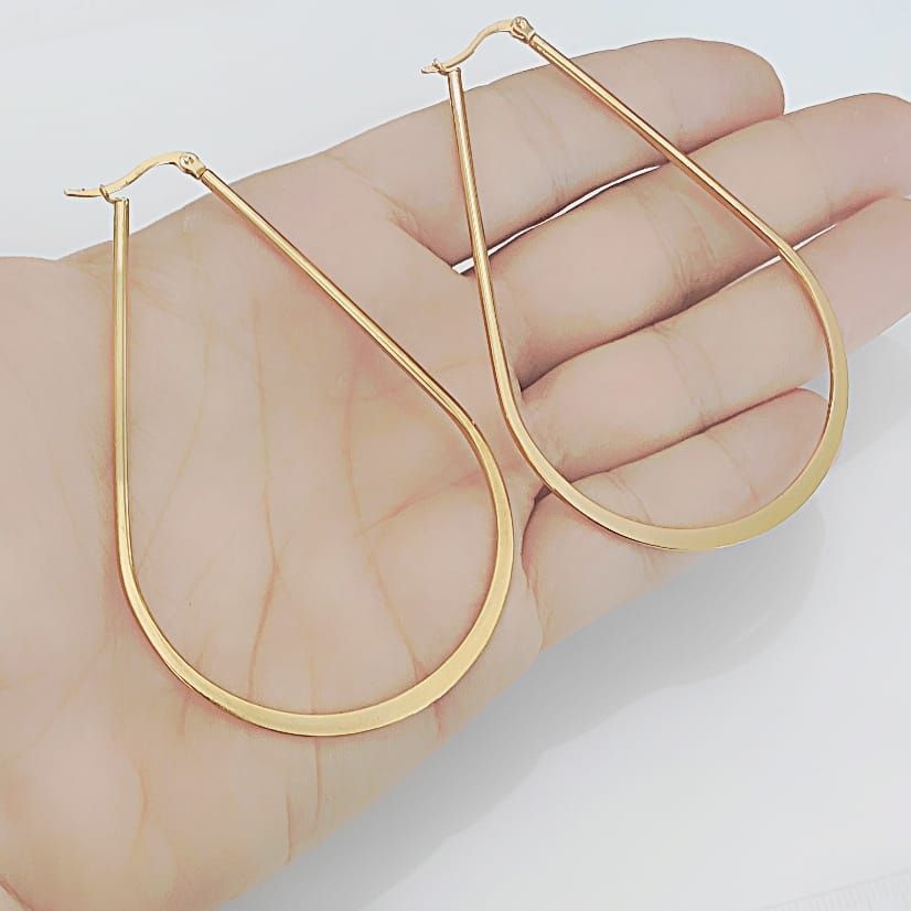 ARGOLA GOTA GRANDE AÇO COM OURO