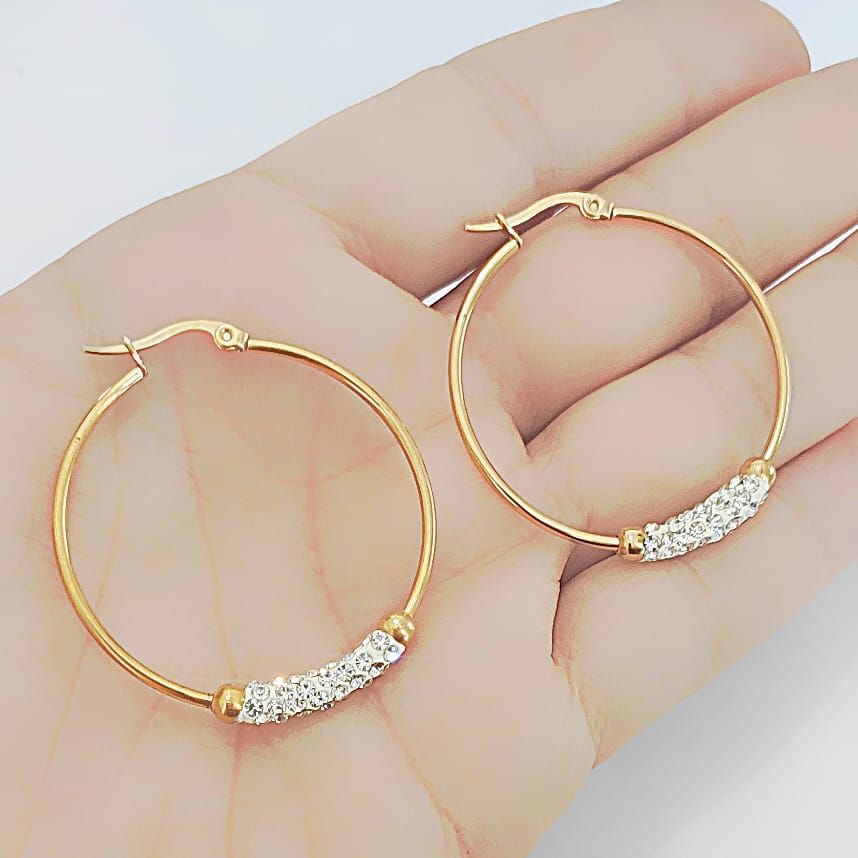 BRINCO ARGOLA DOURADA AÇO COM SWAROVSKI MÉDIA