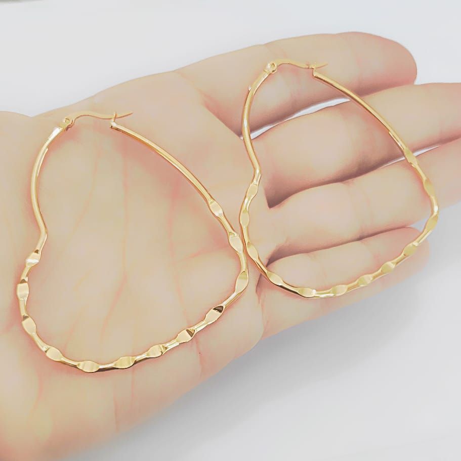 BRINCO CORAÇÃO ARGOLA AÇO COM OURO TRABALHADO