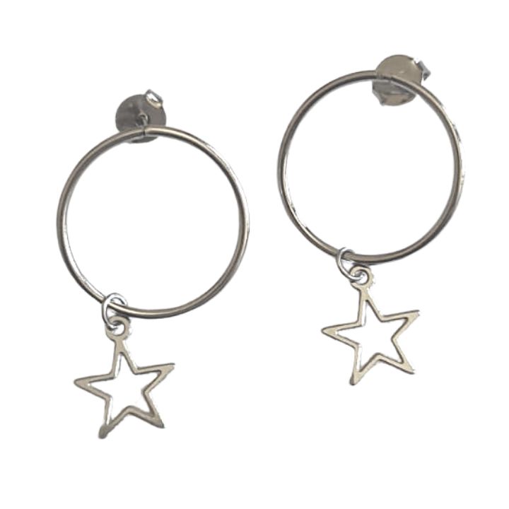 BRINCO EM AÇO INOX ANTIANLÉRGICO MODELO ELO COM 18 MM DE DIÂMETRO, FECHO TARRAXA, FIXO NA ORELHA COM MOVIMENTO DO PINGENTE.