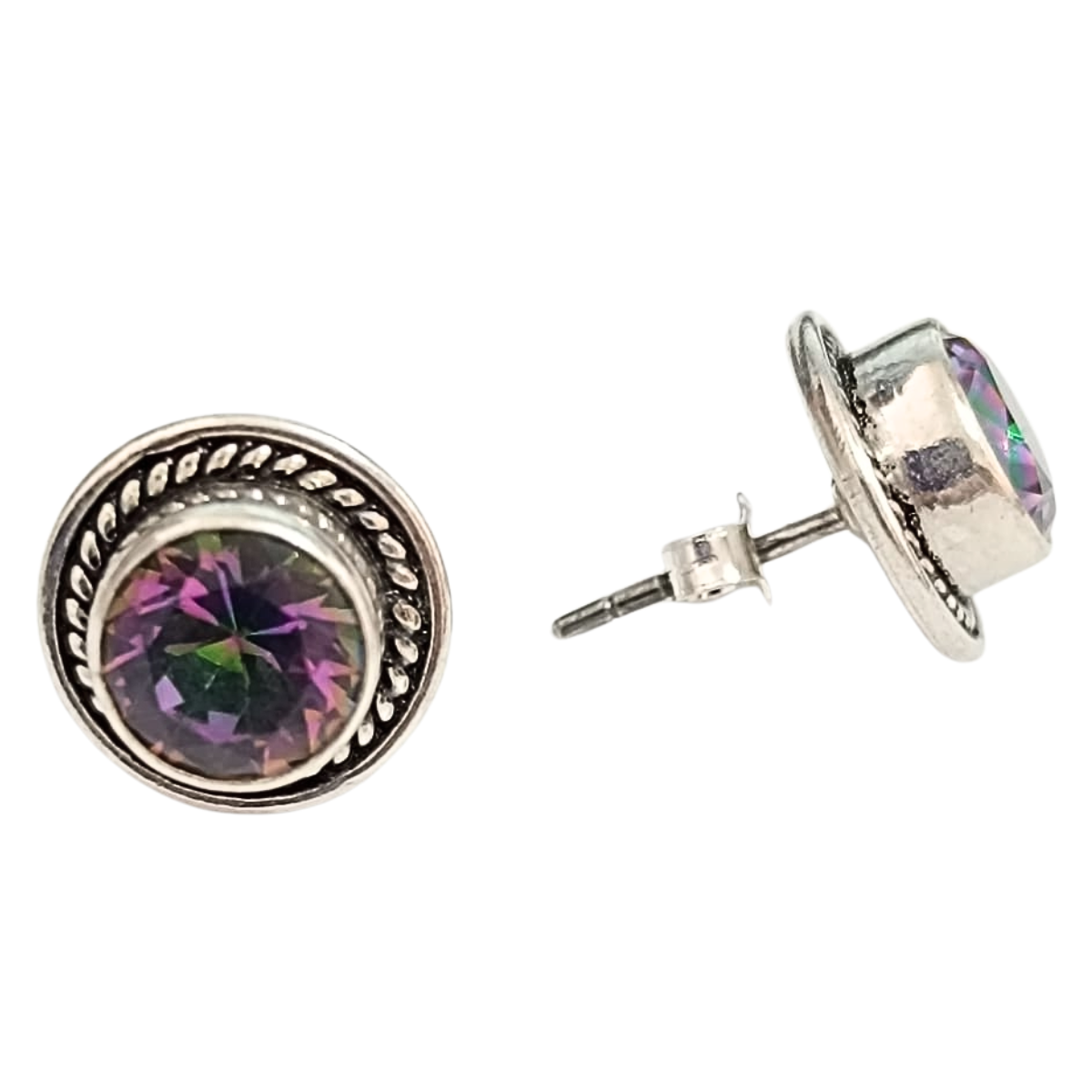 Encante-se com a beleza mística do Brinco em Prata 925 de Bali com Quartzo Místico. Com 12 mm de diâmetro, este modelo redondo e fixo na orelha une a tradição da prata artesanal balinesa à energia única de uma pedra natural. O quartzo místico, com seu brilho multicolorido que reflete tons de roxo, verde e azul, é símbolo de transformação, proteção e elevação espiritual — perfeito para mulheres que desejam se conectar com sua essência mais intuitiva.