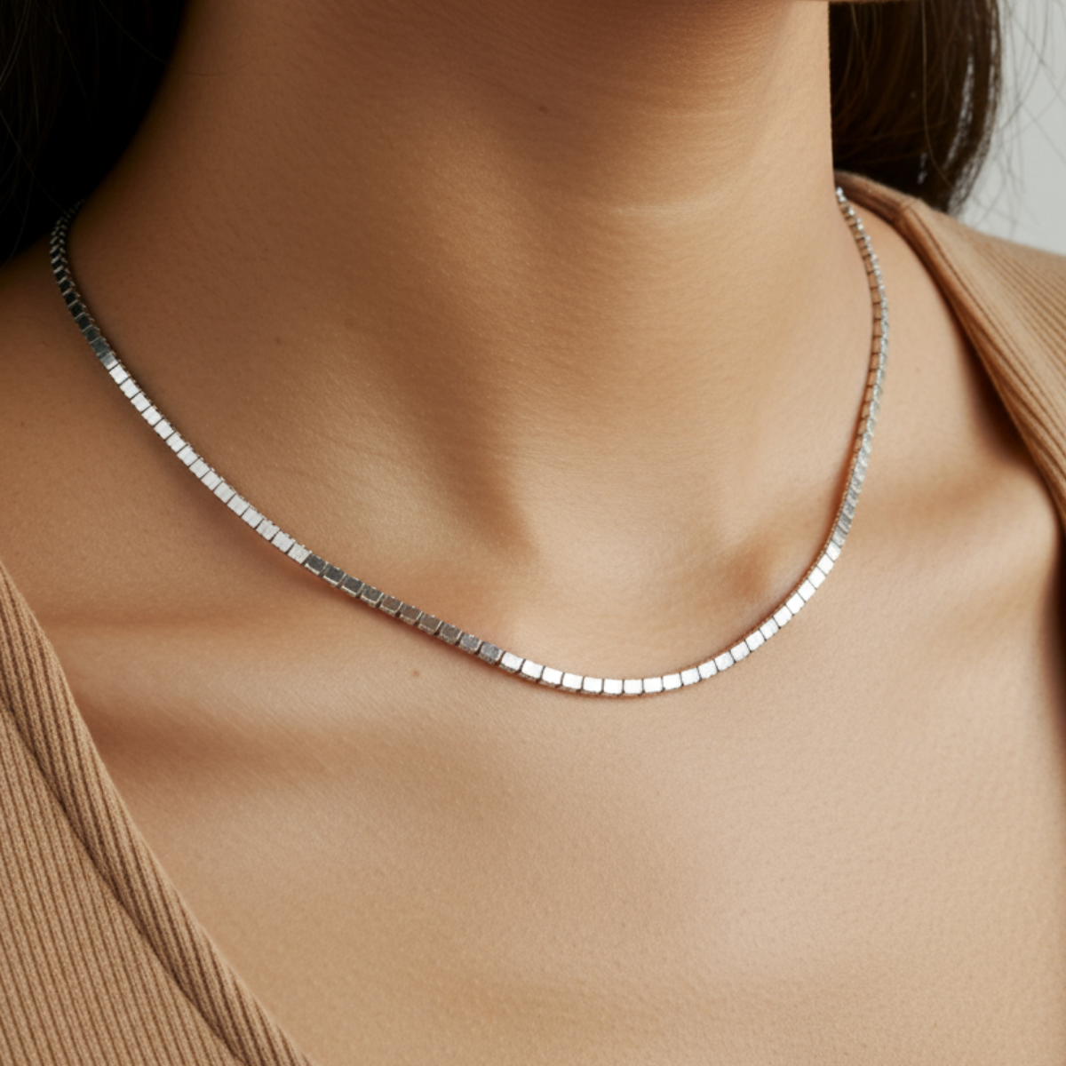Feito em aço cirúrgico, é um acessório antialérgico, resistente à oxidação e de alta durabilidade, ideal para quem busca beleza com funcionalidade. Combine com outros colares para um mix fashion ou use sozinho para um visual mais clássico e refinado.