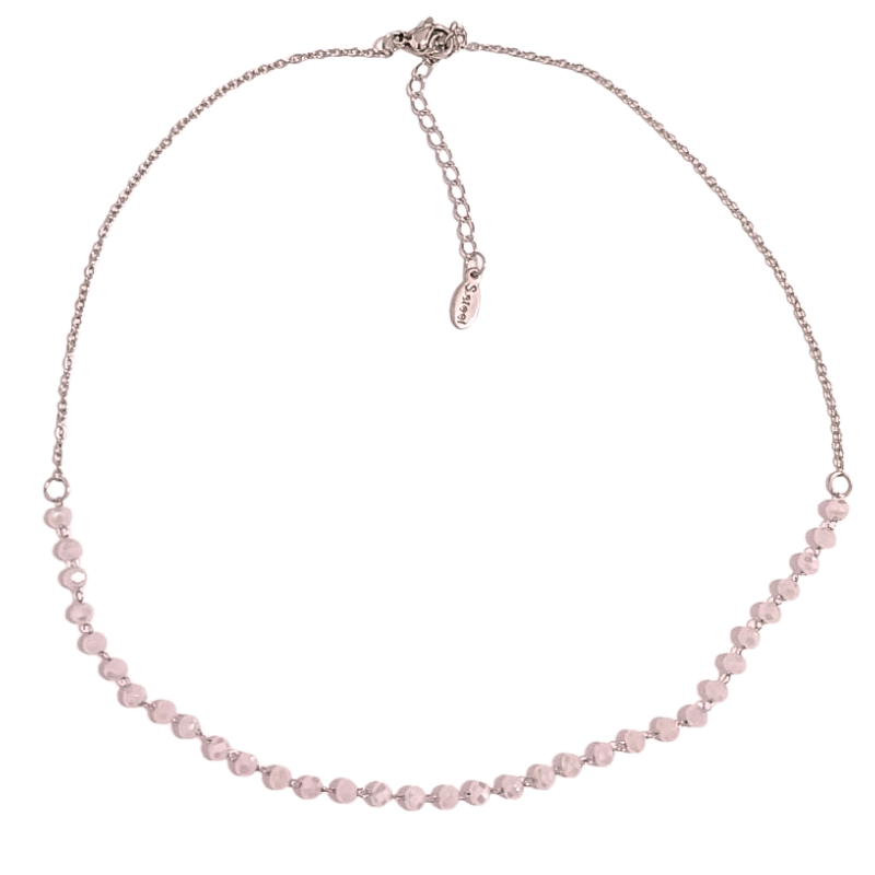 Produzido em aço cirúrgico hipoalergênico e resistente à oxidação, mantém o brilho mesmo com uso diário e é seguro para peles sensíveis. Ideal para usar sozinho em looks delicados ou combinado com outros colares para composições modernas e femininas.