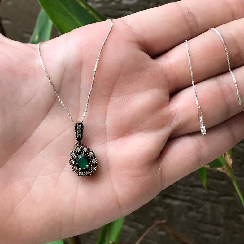 COLAR PRATA TURCA DELICADO ESMERALDA