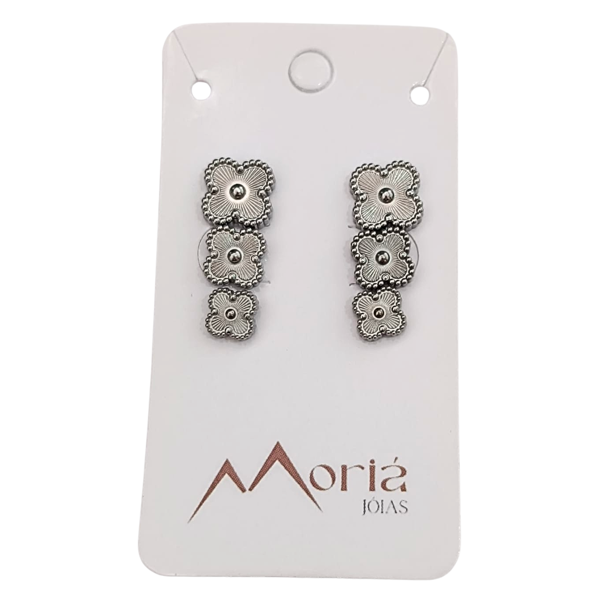 Trio de Brincos Femininos em Aço Cirúrgico Modelo Flower – 10mm, 8mm e 6mm
