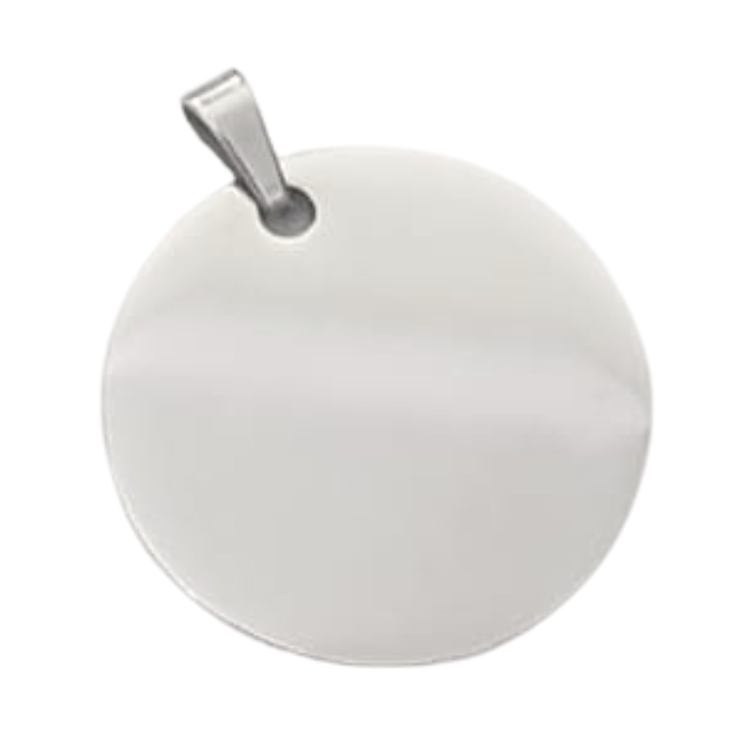 PINGENTE EM AÇO PLAQUINHA REDONDA PARA GRAVAÇÃO.