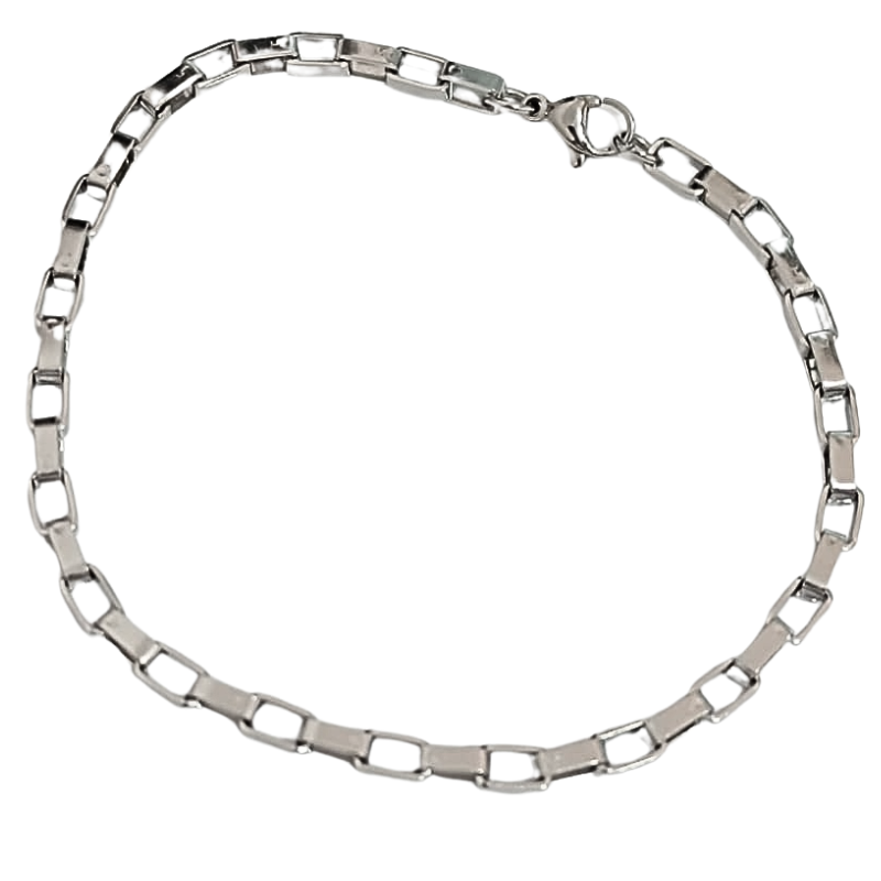 Os elos retangulares espelhados refletem a luz de forma sutil, valorizando o visual com um toque moderno e sofisticado. Ideal para quem busca um acessório atemporal, que pode ser usado tanto no dia a dia quanto em ocasiões especiais.