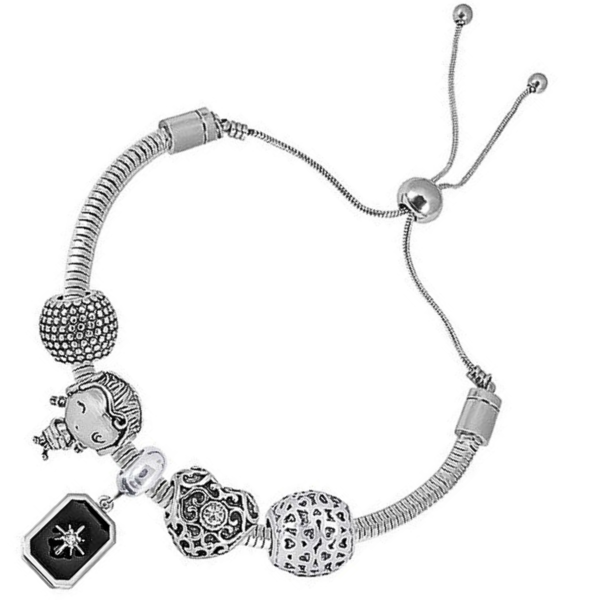 Repleta de simbolismo e estilo, essa pulseira de berloques em aço cirúrgico modelo ajustável é perfeita para mulheres que gostam de expressar sua essência com elegância. Seu design moderno e delicado é composto por 5 berloques únicos, cada um com um significado especial: